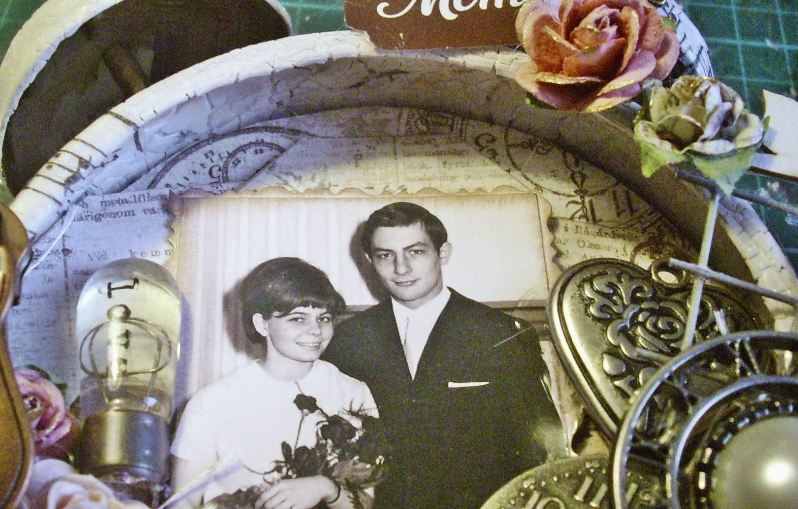 geklebt. Davor habe ich das Photo eingeklebt. Danach alle Öffnungen verziert.